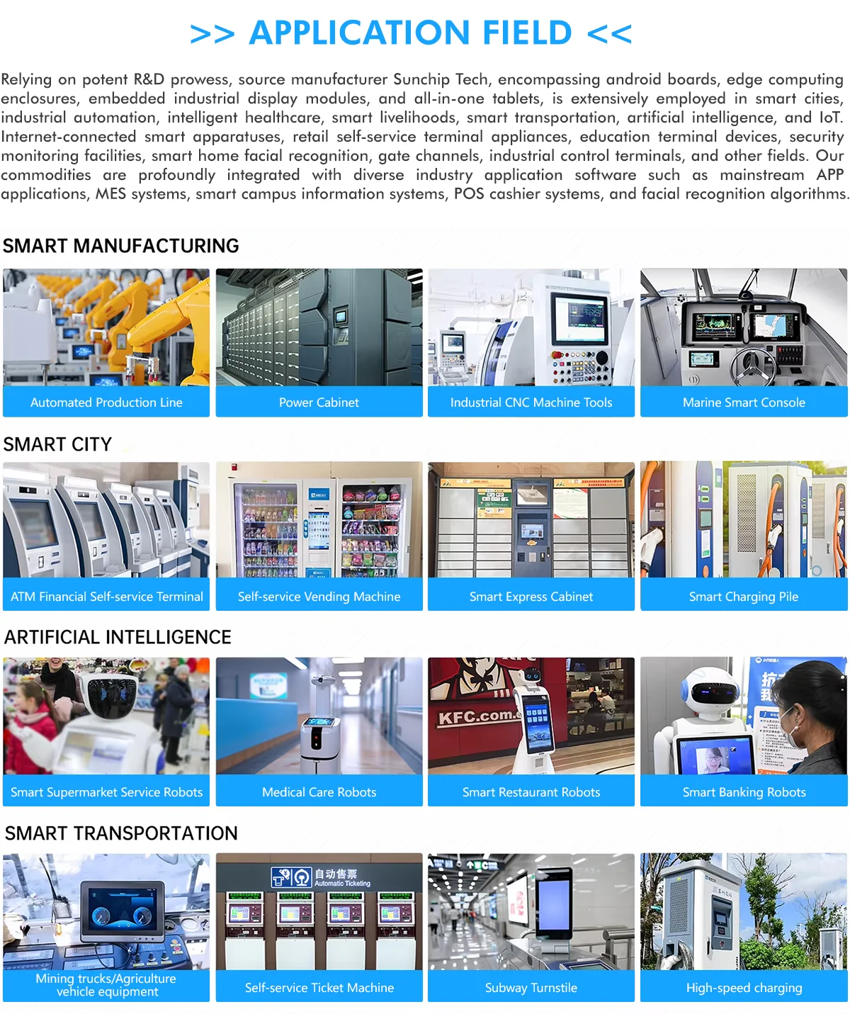 Established in 2011, SUNCHIP is a high-tech engineering company specialized in designing and manufacturing Digital signage, Embedded digital signage, ARM board and Andriod-based customized products, which are compliant with CE, FCC and RoHS standards.