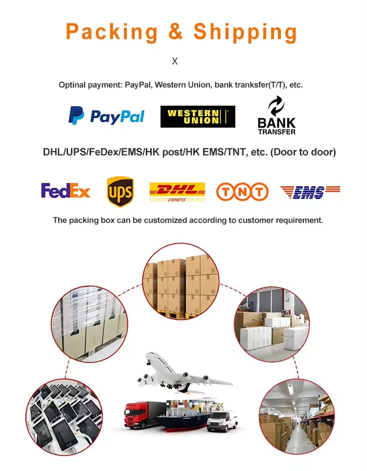 1.Packing: carton box or wood case 2.Payment methods: accept T/T,Western Union,Paypal and Cash. 3.RMA Policy: customer bear all the freight and duty charge to factory,and the factory afford return freight charge. 4.Warranty: 12 months warranty. Paid maintenance over 12 months. 5.Remark: ROHS, CE & FCC certificates in e-file format are available. 6.MOQ: 1pc, sample order are welcome for your evaluation.